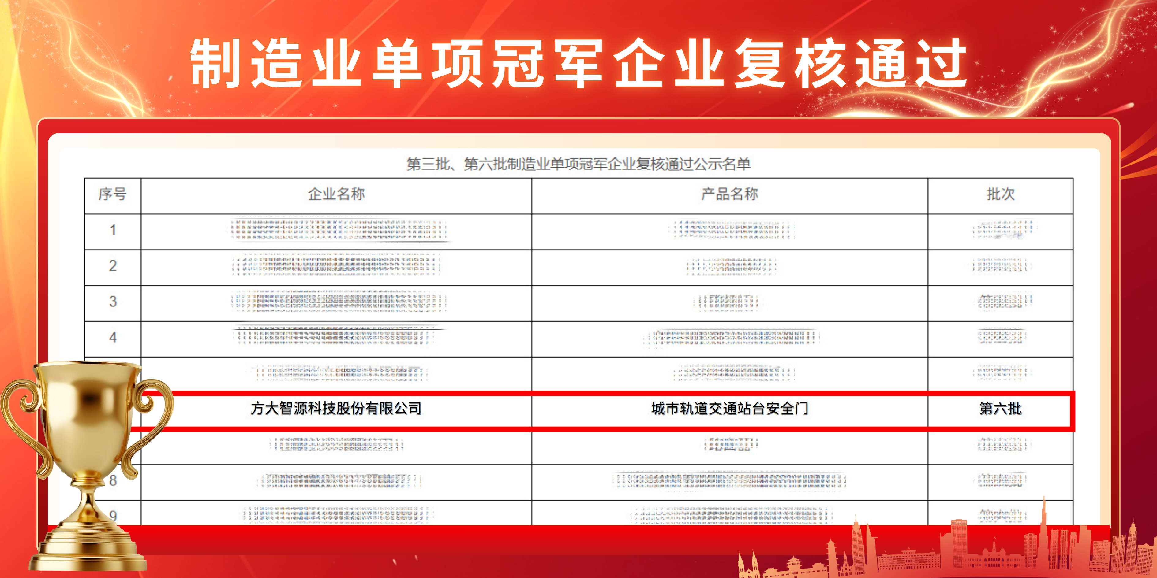 2023年,方大智源被评为国家知识产权优势企业。目前累计获得技术专利超过300项,其中国际PCT专利20项,计算机软件著作权15项。相关技术先后荣获广东省科技进步奖、深圳市科技进步奖、深圳市企业创新记录等荣誉。2025年,方大智源连续七年上榜“深圳行业领袖企业100强”,主编国家标准《城市轨道交通站台屏蔽门系统》(GB/T 46749-2025)正式发布,在行业内持续发挥创新引领效应。