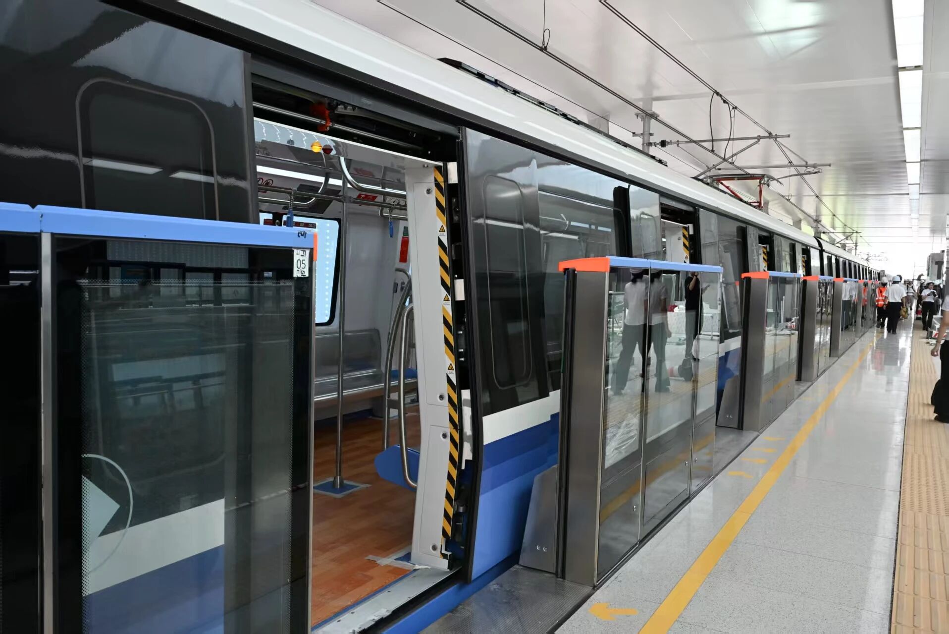 1号线对标国内先进水平,进一步强化了信号、车辆、通信、综合监控、站台门五大全自动核心系统,以“高安全性、高可靠性、高舒适性”为标准,一次性开通国内自动化等级最高(GoA4级别),时速最快(120km/h)的长大城轨线路。
