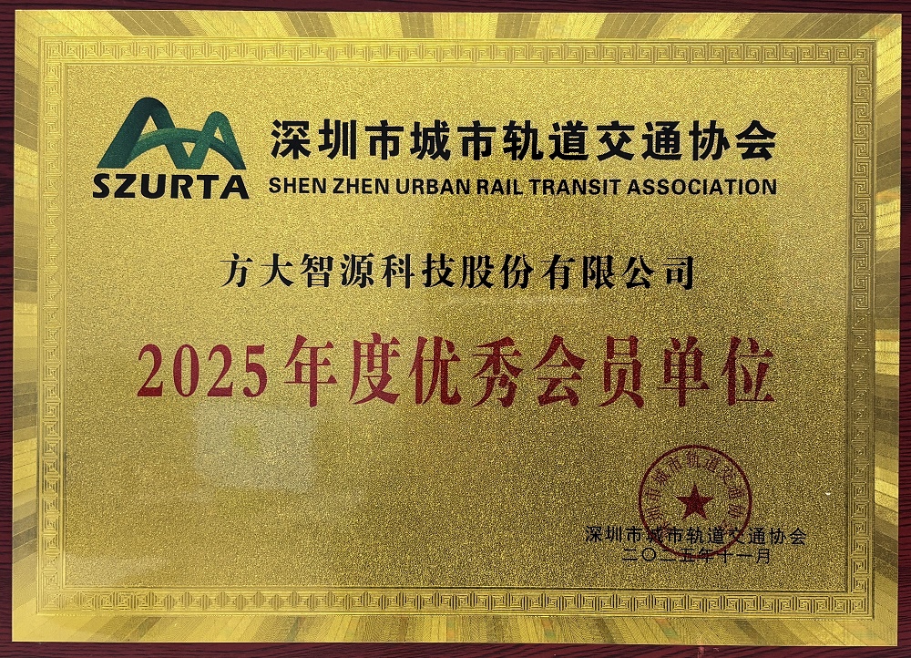 2025年11月25日,值深圳市城市轨道交通协会成立十周年之际,方大智源作为副会长单位参加“深圳市城市轨道交通协会第四届第一次会员大会暨2025轨道交通高质量发展创新论坛”,荣膺2025年度优秀会员单位,经选举蝉联协会副会长单位。